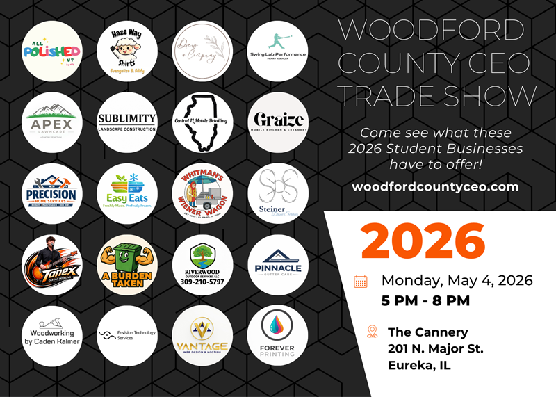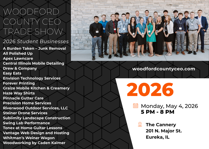 Woodford County CEO Class of 2026 is comprised of 20 students. Students are selected from 3 different surrounding schools.